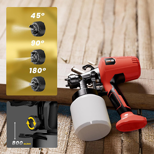 Töltse fel a 800 ml-es tartályt, csavarja rá, és kezdje el a festést – a beállítás kevesebb mint 60 másodpercet vesz igénybe. Nincs alapozás, nincs festékhígítás, nincs extra felszerelés, amit meg kellene venni. A 2,5 mm-es fúvóka egyenletes, állítható áramlást biztosít, így az első vonástól az utolsóig megőrzi az irányítást.